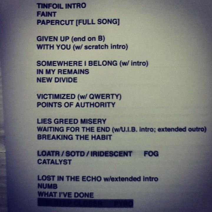 Particularmente, esse foi o melhor show deles que eu já fui (e eu fui em todos que eles fizeram no Brasil). Os grandes sucessos ("Crawling" o Chester cantou só o comecinho, a capella, lindo demais!), as músicas novas, medleys, sem nenhum grande efeito, sem nenhum palco mega robótico, só eles, nós e as músicas. Perfeito! E se não pudesse ficar melhor ainda ouvi, pela primeira vez, "Leave Out All The Rest" ao vivo, já posso morrer feliz.